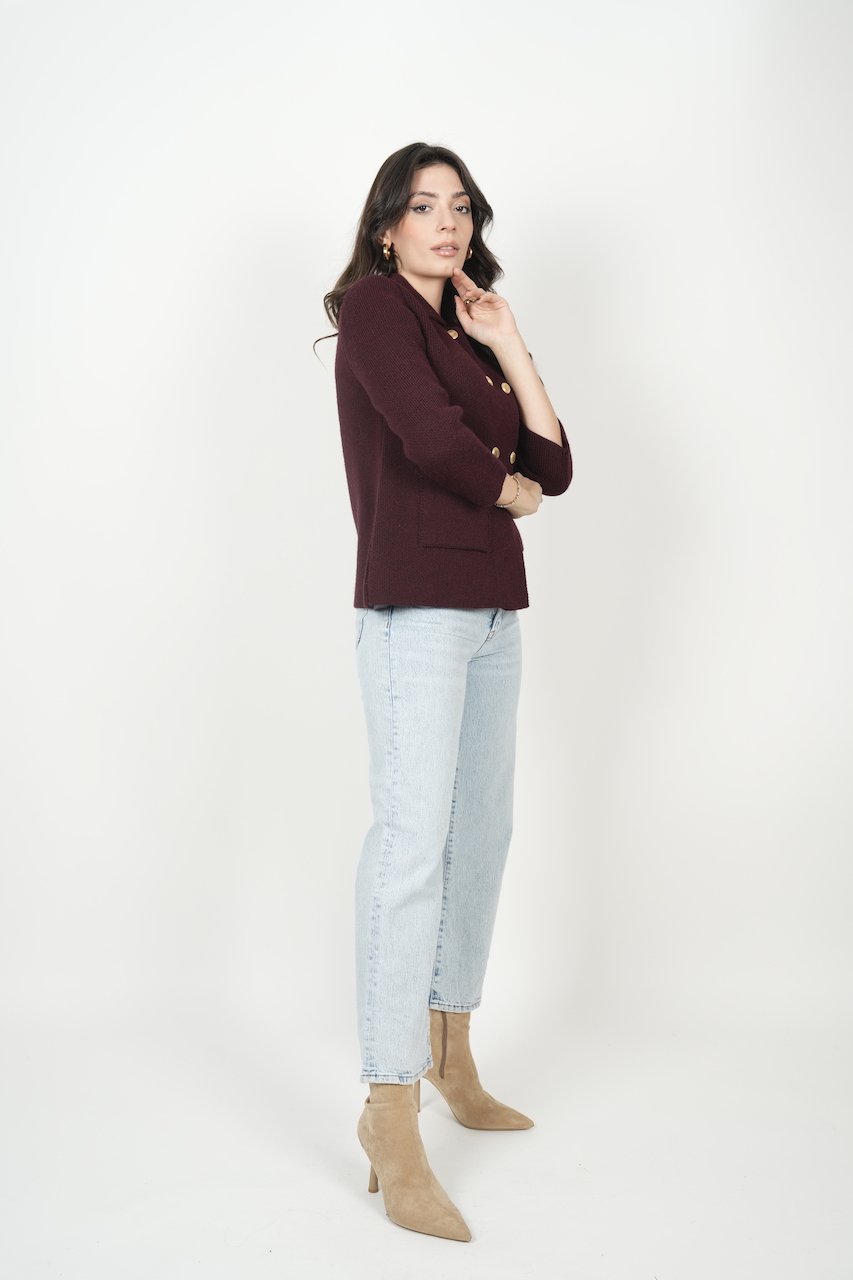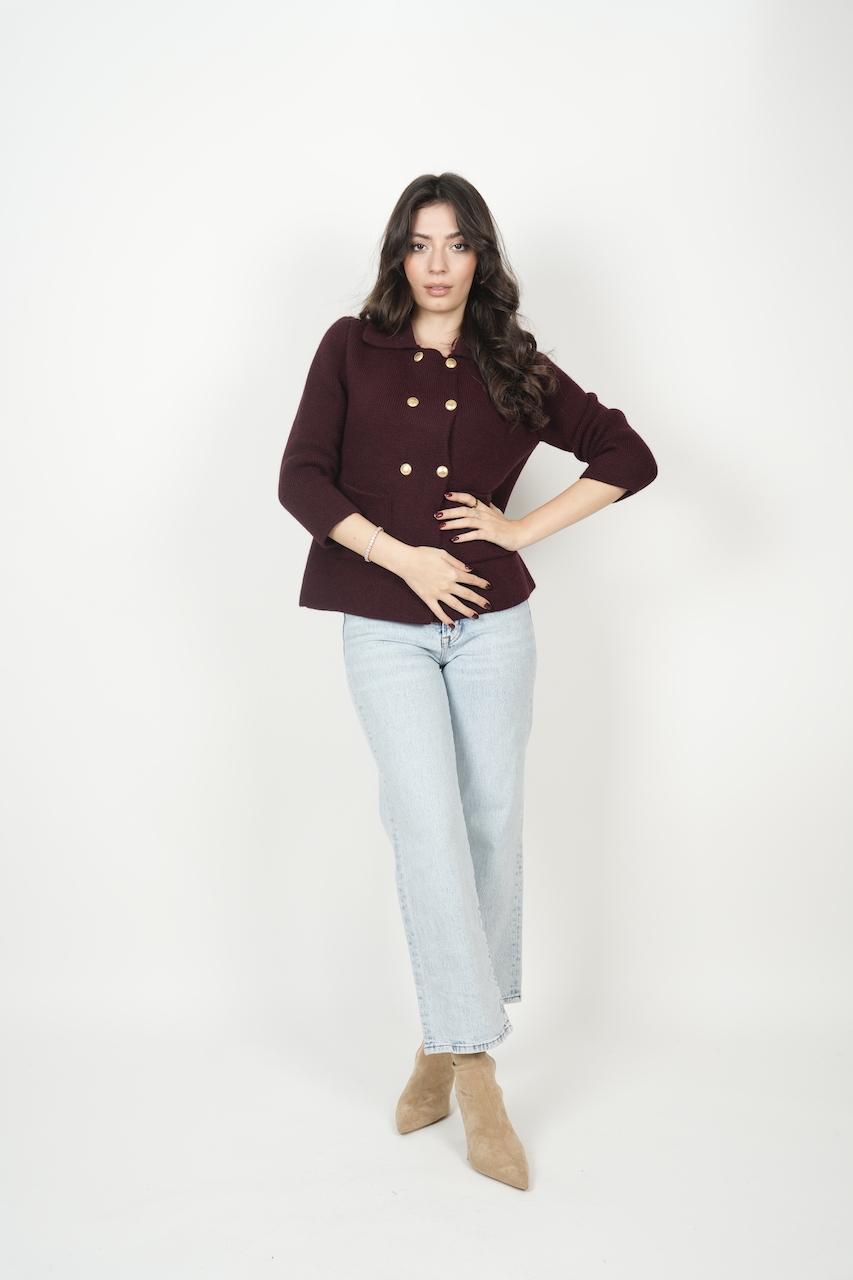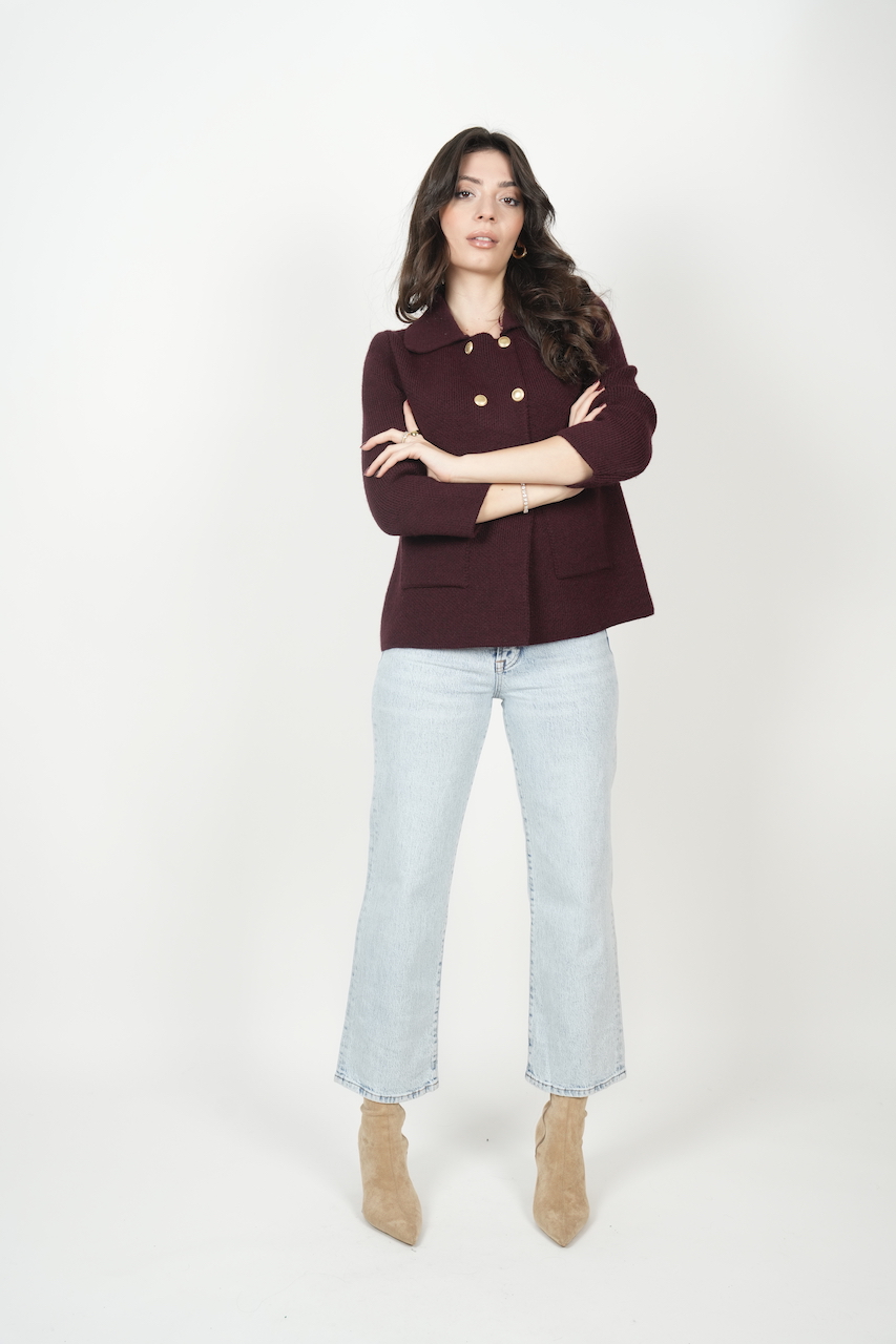 Polo Yaka Düğmeli Cepli Triko Hırka – Bordo