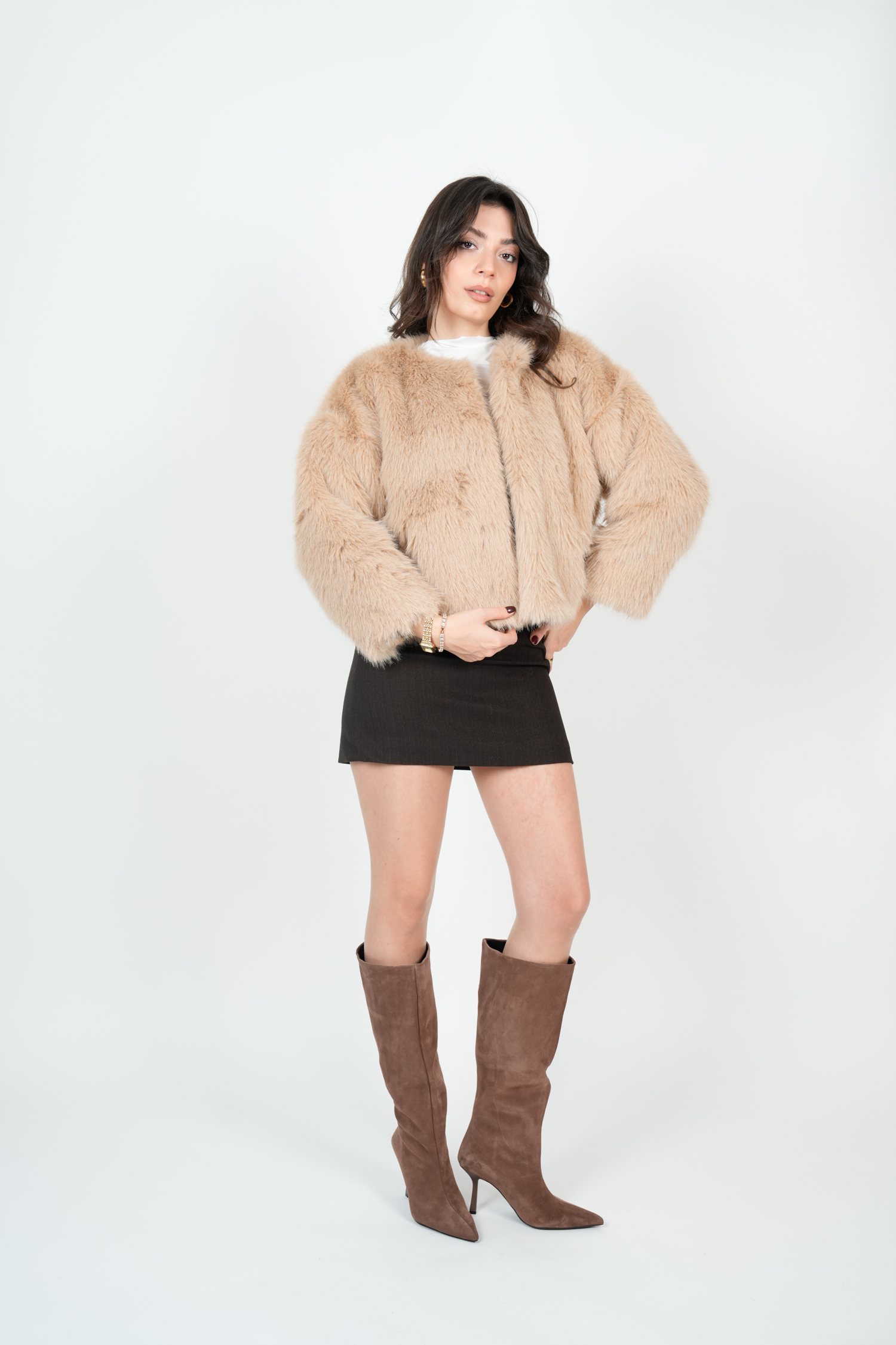 Suni Kürk Ceket – Krem